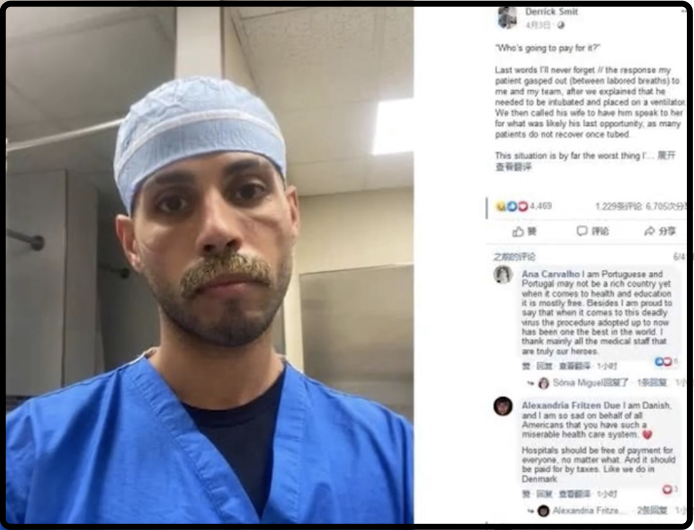显然,欧美已为此付出非常惨痛的代价,想来某些卑鄙的政客和资本家们也该懂得放下高高在上的身段,开始自我反思了吧?可荒诞的是,反思的是极少数,甩锅成了愚蠢的西方政客和媒体们的当务之急。清奇的思维,和奇怪的逻辑,让他们将大量资源花在了“中国病毒论”与“中国有罪论”的宣传中去,他们以惊人的速度转译出版了谣言作家方方的《武汉日记》,又以大篇幅的版面对中国和世卫组织展开了围攻。其言语之恶毒,行为之卑劣,令人发指。▲中国作家方方的“造谣日记”,以及其所谓的“被迫害论”,近期频现西方媒体头条版面。4月14日,在此前多次攻击、诋毁、威胁世卫组织之后,美国总统特朗普终于在白宫新闻发布会上宣布“制裁世卫组织”,取消了对世卫组织的会员赞助。他还一脸严肃地说:美国有权对世卫组织进行问责。这显得颇为尴尬,不去问责自己浪费掉的数十个日夜,不去调配物资支援奋战在一线的医务人员,不去思索防疫过程中的体制漏洞,不去救助那满大街激增的疫情难民,而是忙着找个替罪羊,龇牙咧嘴地一顿狂喷,显得无德无能。▲美国医生在推特上写下长文表示,病人临死之前问他“我死后高昂的医疗费用谁付”。美国至今还未就新冠病毒的治疗“免单”。