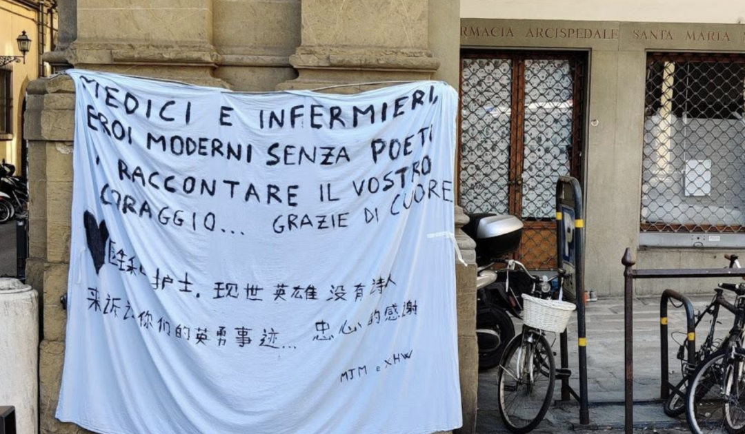 可怕的是,这个封锁不过一个月的国家,至今还是日增数千人确诊,日增数百人死去,如此境况却大张旗鼓复工,实在令人费解。而意大利威尼托大区主席Zaia的一席话似乎道破了这背后的缘由:目前所谓的封锁措施已不复存在,一些企业开始被批准复工,另一些企业在未批准的状况下也开业了,尽管我还是想保护公民的安全(但无能为力),我们现在都在赌未来。Zaia主席的话显得很无奈,他没把话说透,但说得很明白,各方的资本力量,正在突破封锁的防线,为了金钱而一意孤行。资本家们憋不住了。可悲的是,没人能管得住他们,毕竟这是民主的“资本社会”。▲在意大利,留守的中国人挂出标语向医护人员致敬,但可悲的是,政客和资本家们,却在拿医护人员牺牲换来的“稍见好转”做赌注,准备开始恢复秩序。截止目前,意大利医护人员死亡已达一百多人。