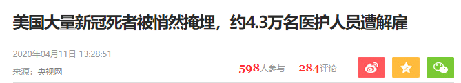 在美国新冠疫情全面爆发,确诊人数突破55万,每天病死人数在2000人以上,累计病死超过2万——大量患者还无法得到及时检测与收治的情况下,美国居然在大量解雇医护人员,总人数超过4.3万!