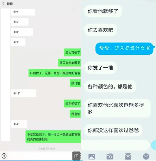他反复纠正李星星说话的方式,不准说难受、痛苦,要说“伤心”,不准说“被爸爸按在床上”,要说“你喜欢爸爸,爸爸也喜欢你”。