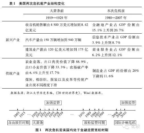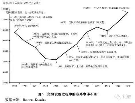 历史重复自己有线性方式,也有非线性方式,有符合逻辑的精准变化规律,也有逻辑不清的意外变化,甚至还有很多无法解释的历史困惑,这一切既是进行这项研究的迷人之处,也是它的难点所在。在下面的报告中,我们将按照马克思主义的分析方法,归纳两次危机的不同点,试图总结出两者的共性特点,并得出初步的政策结论。由于历史事件和比较的对象极为宏观,可以用于翻阅资料和进行数据比较的研究时间十分有限,我们的描述选择了较为粗略的方式,描述的重点是“是什么”而不是“为什么”。即便是对“是什么”的描述也十分困难,因此这项研究大纲仅是更深入研究的起点。