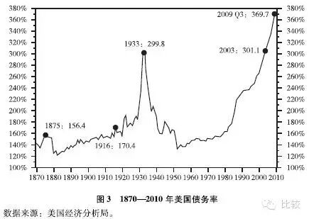 民粹主义承诺改变了大众的福利预期,加大了对政府的依赖,也放松了自己的奋斗决心,是效果极其负面的腐蚀剂。致命问题是,一旦大众的福利预期得不到满足,社会心理很快发生逆转,并形成蔑视权威、拒绝变革和仇视成功者的强烈氛围。与此同时,超出收入能力的过度财政负债和福利主义相应成为一种习惯,这种习惯在政府和民间相互影响,其破坏力在目前的欧债危机中得到充分体现。对这个问题,桥水投资基金的戴利欧先生在“和谐的去杠杆化”一文中,对政府和民间的去杠杆化过程做了精彩描述。文章认为,每隔70年左右的一次高负债都伴随着一次经济危机(见图3),在这期间工资增长都超过劳动生产率的增长,负债增长都大大超过税收能力。
