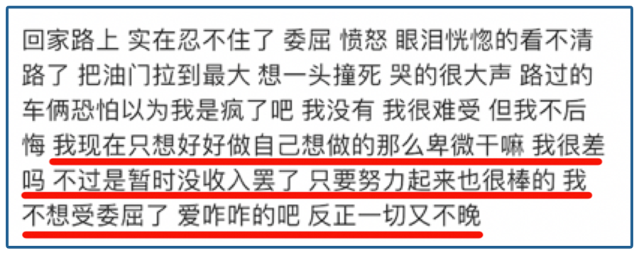 当然,更多人还不致于如此落魄,最差啃啃老、靠家人帮扶还能再撑撑,但是由此带来的屈辱感是避免不了的。