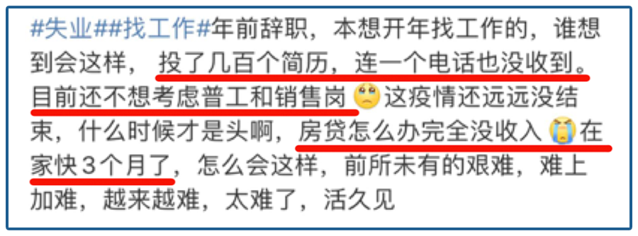 有些人年前辞了职,本来信心满满,结果几百个简历没收到一个电话,再加上房贷,难上加难,越来越难。