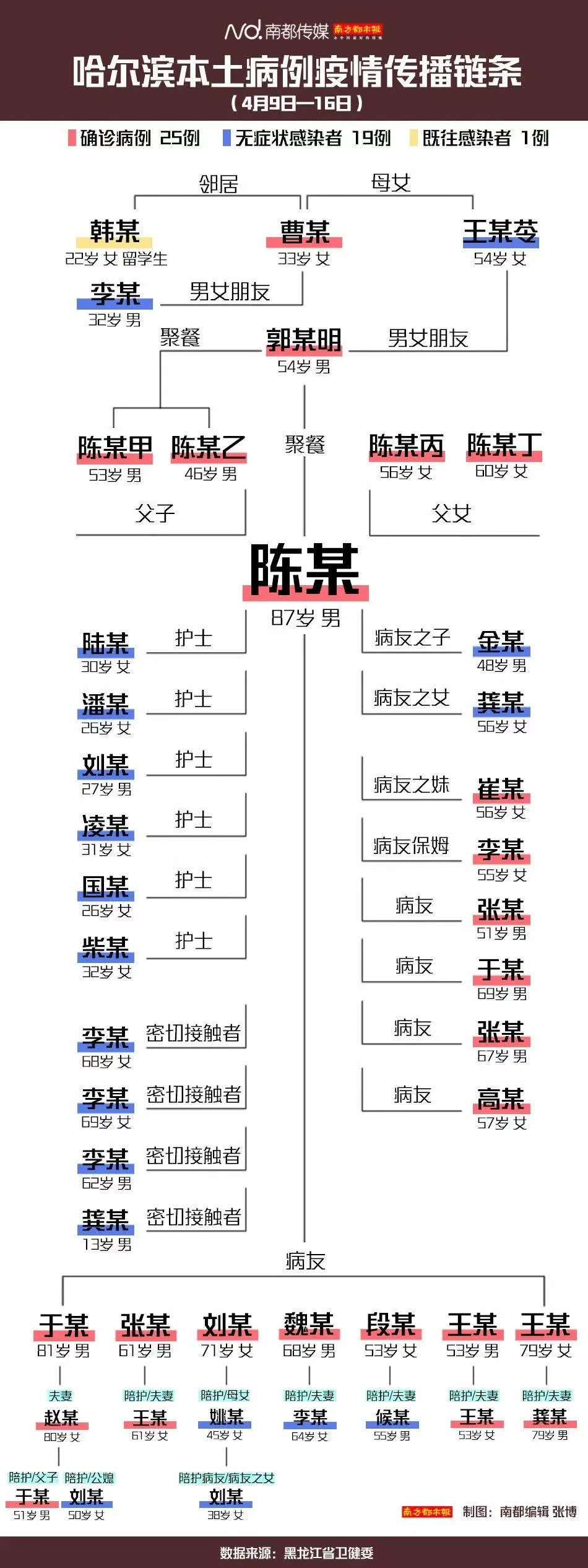 事实上,如果欧美、俄罗斯等国传播的病毒已经发生变异,并且的确存在大量无症状感染者,那将是全世界的噩梦。因为,这不但意味着疫情将更难清除,也意味着未来将在更广泛的范围内传播,甚至还可能出现基于上一代病毒研制的疫苗,对连续出现新变异的病毒效果减弱的甚至无效的情况。这些可能存在的新问题,都令人忧虑,因为不确定性增加了。从现在情况看,把疫情的控制完全寄望于疫苗就显得太被动了,因为病毒是在不断发生变异的过程中,疫苗是否真的能阻止病毒,什么时候能阻止病毒,这都是未知数。至于特效药,现在看比疫苗更慢,暂时更指望不上了,但病毒的传播却在加速过程中。所以,联合抗疫,通过联防联控,通过早发现、早诊断、早隔离、早治疗这种最传统的办法,大概是尽快扑灭疫情的最有效的办法。事实上,世卫组织也证明,中国的办法是证明唯一有效的办法。这一点,事实上也正在被验证,因为之前防疫做得不错的俄罗斯、新加坡和日本,疫情都开始加重了,按照中国思路抗疫的韩国疫情却基本得到了控制,这再次证明中国的抗疫思路是最有效的和唯一有效的办法。然而,要实现全球联合抗疫,现在恐怕还不现实,原因是美国为首的西方发达国家依然在用意识形态左右抗疫路线,这是阻碍联合抗疫的最大障碍。他们不被疫情折腾得彻底没办法,大概是不会走这条路的。对中国来说,现在只能和日本、韩国、东盟等这样的国家一起,率先把联合抗疫组织起来,先形成一道保护自己的屏障再说。与此同时,中国应该与俄罗斯、中亚国家加强合作,形成新的抗疫合作联盟,展开对疫情的防控,在控制疫情后形成新的防护屏障。另外,哈尔滨的病例传播链条告诉我们,我们的防控上还是存在漏洞的。在上图哈尔滨的传播链条中我们可以看出,这次感染事件实际上是由一个从美国回来的既往感染者引发疫情传播的。什么是既往感染者?直白说,就是以前感染过,身体内发生了比较好的免疫清除,自身产生了保护性抗体,因此在抗体检测的时候呈现阴性。从美国返回的这个留学生就是这样的情况。根据哈尔滨官方的说明,自美回国的留学生韩某,于3月19日从美国抵哈,当晚22时左右通过“手递手”方式转运至家中,并按照当时政策规定,执行了居家隔离观察。期间,采取了相应管控措施,并按规定对其进行了医学检测,3月31日核酸检测为阴性,抗体检测IgM、IgG均为阴性。4月3日,韩某达到了隔离满14天的要求,再次对其进行了核酸检测,结果为阴性,所以解除了对韩某的居家隔离。4月9日,郭某发病确诊后,通过流调和大数据比对溯源分析发现,郭某的密切接触者(即曹某),居住在哈尔滨市道里区群力富力江湾小区,与韩某同住一栋楼、同一单元,分别为402室和302室,是楼上楼下邻居,二人并不相识。韩某在隔离期间,居家未外出。为此,4月10日、11日韩某进行两次抗体检测,诊断为新冠肺炎既往感染者(境外输入)。