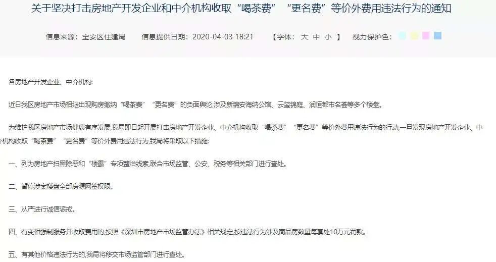 我们永远不能低估人性的“恶”,因为这会让一切善意最终被现实狠狠的打脸。深圳最近的炒房客躁动,就给全国人民狠狠的上了一课。最近,正当全民集体过紧日子,国家咬牙拿出为数不多的积蓄拯救濒临躺倒的经济时,却有部分企业趁机套路政府的“救命钱”,转身杀入了刚刚被稳住的深圳楼市。上面是房地产中介朋友圈操作的企业经营贷细则,800万的房产,经中介操作后可以套出利息只有1.9%的1000万经营贷,再把这个钱拿去买房,套利空间极大。4月3日,深圳宝安区住房局更是对开发商和中介们巧立名目的“喝茶飞”/“更名费”重拳打击。