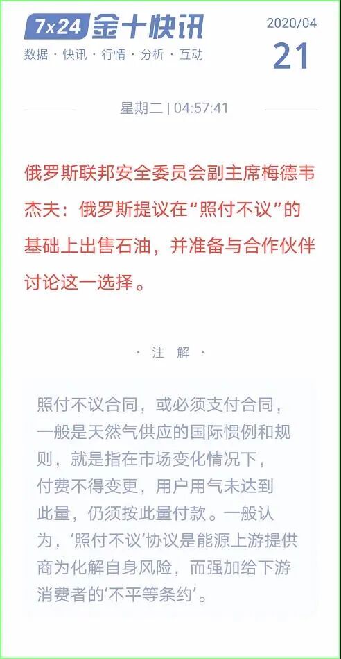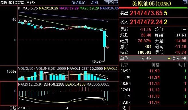 这是人类第一次在期货市场中,见证原油走到0美元以下的价格。疫情导致全球大面积封锁是关键。封村、封城、封国……昔日熙熙攘攘的街头,变成空城。这样的景象,是疫情肆虐下的常态。这是做空原油的逻辑,也是原油持续下跌的逻辑。就像我在之前所说的:分析趋势,做投资,首先要找到其中的逻辑,然后,跟着逻辑走。逻辑不变,趋势不变;趋势不变,则操作不变。不能因为短期的走势,而改变自己对大趋势的判断。原油跌到负数,最大的力量,来源于疫情,来源于原油的过剩。原油无处可存放,才是导致原油走到如此地步的根源,因为,存放原油是需要成本的。北京时间4月13日,经过长达一周的双边会谈以及全世界能源部长为期四天的视频会议,OPEC+达成历史性的减产协议。我在课程中分析认为:所谓的减产协议,由于各怀鬼胎,加之疫情仍在恶化,根本不可能扭转原油的趋势。尽管这是OPEC成立以来达成幅度最大的一次减产协议,但是,OPEC自己也预计,全球原油需求在4月下滑2000万桶/日,这意味着970万桶的减产仅能抵消一半不到的影响。再加上减产会议上,墨西哥搅局,一度导致减产协议泡汤,这种貌合神离、同床异梦的合作,不可能会好的结果。而且,减产协议是从5月1日才开始执行,这之前,以俄罗斯人早已经破产殆尽的信誉来看,它只会加大马力增产。由于疫情迟迟看不到拐点,对原油的需求还将进一步下滑,据估算,随着疫情的持续蔓延,需求萎缩程度最高会达到3500万桶/日,而这也将对各主要产油国的石油企业产生持续冲击。事实上,最新的消息显示,俄罗斯的确在增产,这种背信弃义、故技重施的做法,成为压弯油价的最后一根稻草。历史无数次证明:信俄罗斯者,没有生。由于冠状病毒和相关的检疫措施,仅美国国内汽油需求就减少了约60%,北美各地的炼油厂都在大幅削减吞吐量,但原油生产的削减没有跟上,那么,多生产出的原油,存放在哪里?存放是有成本的。考虑到这一点,原油实际上已经“没有了实际交付的价值……是毫无价值的”——这是国际能源业研究人士的话。所以,我们见证了每桶-40.32美元的原油。原油惨烈下跌,俄罗斯人再次跳出来表态。俄罗斯联邦安全委员会副主席梅德韦杰夫强调:俄罗斯提议在“照付不议”的基础上出售石油,并准备与合作伙伴讨论这一选择。大家都知道,他这番表态是什么意思。曾经的大单协议,让这个国家,占尽了便宜。5月合约惨烈跌到-40.32美元,是惨烈的历史,但是,这种极端的例子,只能算是孤例。因为这个极端的价格出现后,产油国会真正地被触痛,真正地展开减产行动。疫情不过去,油价继续承压,但是,油价跌至负数的情况,是很难持续的。作为投资者,最大的经验或者教训就是,无论什么时候,做投资,都要顺势而为。这波原油大跌,让无数抄底人,粉身碎骨。甚至包括很多散户,比如,工商银行推出的所谓“账户原油”,很多原本不做投资的人,看油价跌到20美元了,就觉得太便宜了,慌不择路去抄底,很不幸,都成为原油每桶-40.32美元的陪葬者。任何一种投资品种,便宜不便宜,不能凭借感觉,而是凭借专业的分析。在上一篇文章中我写道:在这个阶段,最重要的不是考虑如何赚钱,而是如何保全自己,活下来,就是机会!在这个阶段,你看到的很多机会,都与陷阱距离很近——这是一个机会包裹在高风险中的阶段……
