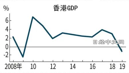 去年受修例风波影响,香港三、四季度GDP都同比下跌快3%,全年的GDP也受拖累,一共下跌1.2%,是十年来的首次。