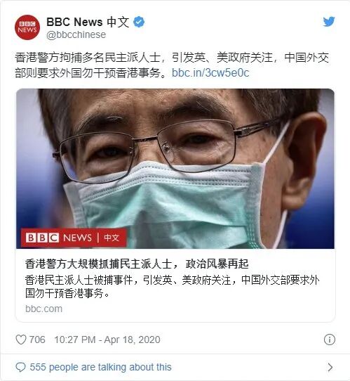 BBC等西方媒体也对这些人违反法律的行为视而不见,宣称这是“香港政治风暴再起”。纽约时报说,这是香港在借着疫情“掩护”,打压反政府抗议。
