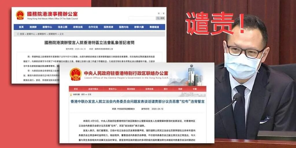 本月13日,港澳办、中联办齐发声明,谴责反对派议员采用卑劣手法瘫痪立法机关运作。