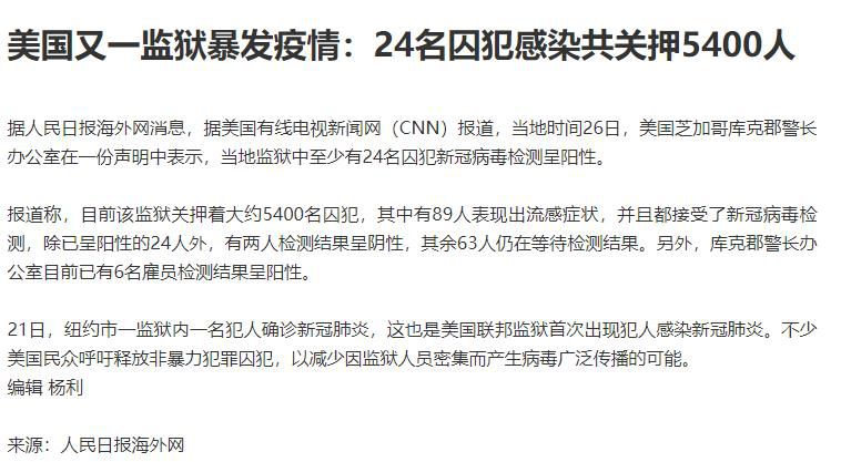 从美国整体的疫情形势看,监狱的情况恐怕不容乐观。