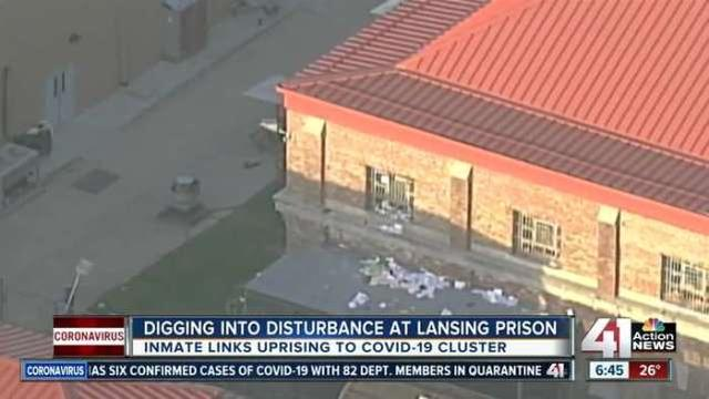 堪萨斯州的兰辛惩教所,囚犯在狱中纵火打砸,要求监狱方面给他们发放口罩等防护物资。