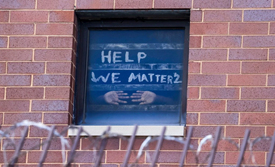 4月9日,因不满监狱应对疫情的政策,美国芝加哥库克郡监狱囚犯发起抗议。他们在窗户写下“救救我们”“我们的命也是命”等求救信号。