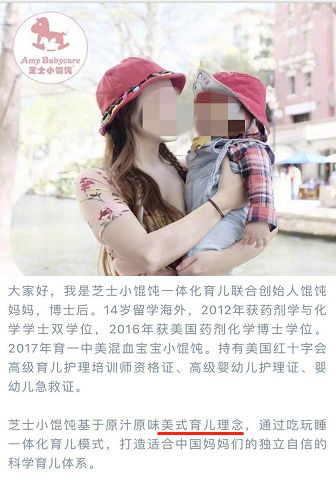这个可爱的女宝宝,出生于2019年12月27日,到今天还没满4个月,小名好像叫可乐。可乐的妈妈,为了能让自家宝宝培养成材,赢在起跑线,刚出月子就开始找各种早教班。她找到了一家名叫“芝士小馄饨育儿经”的公司,购买了睡眠引导服务,据说是美式育儿法,可以培育出独立自主的坚强宝宝。