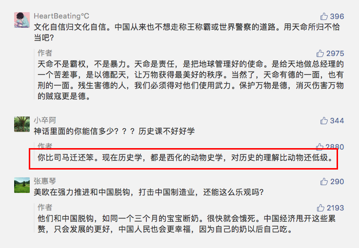 如果你不同意他的观点,你就是笨蛋,比司马迁还笨的那种: