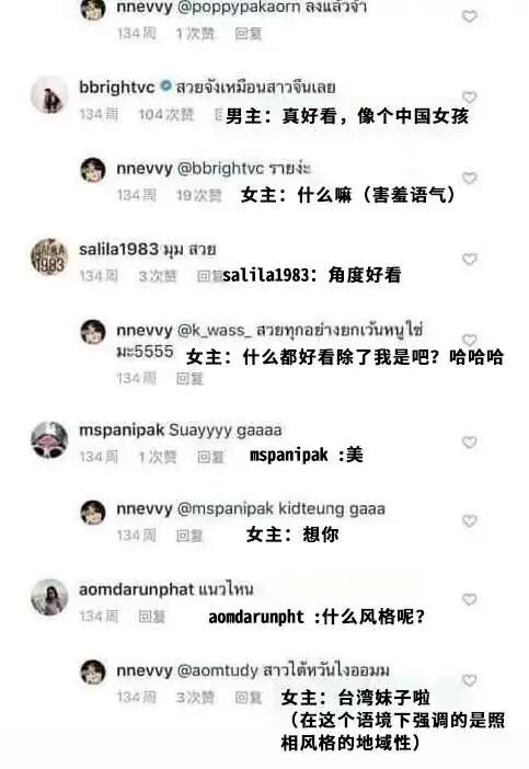 前两天,一个泰国女网红发了一张自己的美照,她的演员男友留言评论说:“你的照片真好看,像中国女孩”