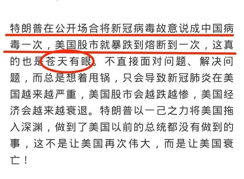 作为一个金融账号,不理性客观地为读者分析局势、科普知识,反而一味地煽动不良情绪,比如“引经据典”地说特朗普药丸: