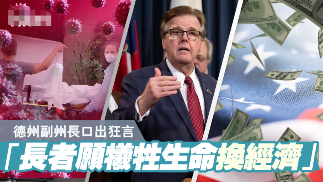 美国德州州长帕特里克甚至号召老年人:如果有人问我作为一个老年公民,你愿意用你的生命作代价,换取为你的子孙后代留住希望。如果这就是交换,那我愿意。