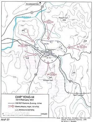 注:运动战期间美军防御每公里平均是14到17门炮,砥平里是每公里16门。
