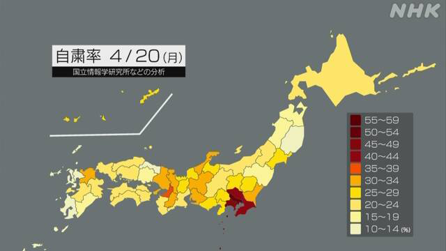 但日本国立情报学研究所数据显示,在进入紧急状态后,日本政府要求居民非必要不外出,待在家里办公。