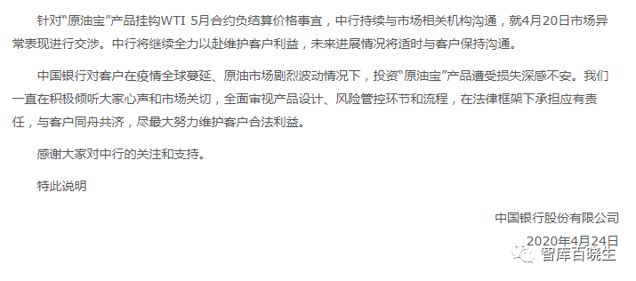 正当数百人准备集体诉讼时,4月24日,中国银行发表声明。