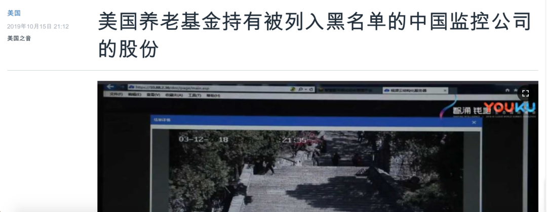 他们持有海康威视股份,其实是因为投资了明晟除美国外世界全资本指数(MSCI ACWI ex-U.S)而自动匹配的。未来,这些养老基金会面临更大的政治压力,促使他们卖出中国公司的股票。比如,纽约州最大的养老基金之一纽约州共同基金,在2019年就清空了科大讯飞的股票。中美两个大国如今似乎走在了十字路口,一个向右,大行孤立主义、逆全球化;一个向左,更加开放,拥抱全球化。