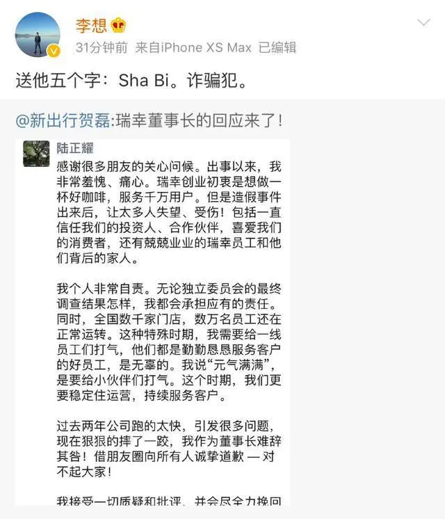 继瑞幸后,4月份,爱奇艺遭到Wolfpack Research和做空机构浑水看空,股价当天跳水12%;跟谁学遭Grizzly Research和香橼做空……瑞幸自曝造假以后,理想汽车创始人李想在社交应用上怒斥陆正耀为“诈骗犯”。