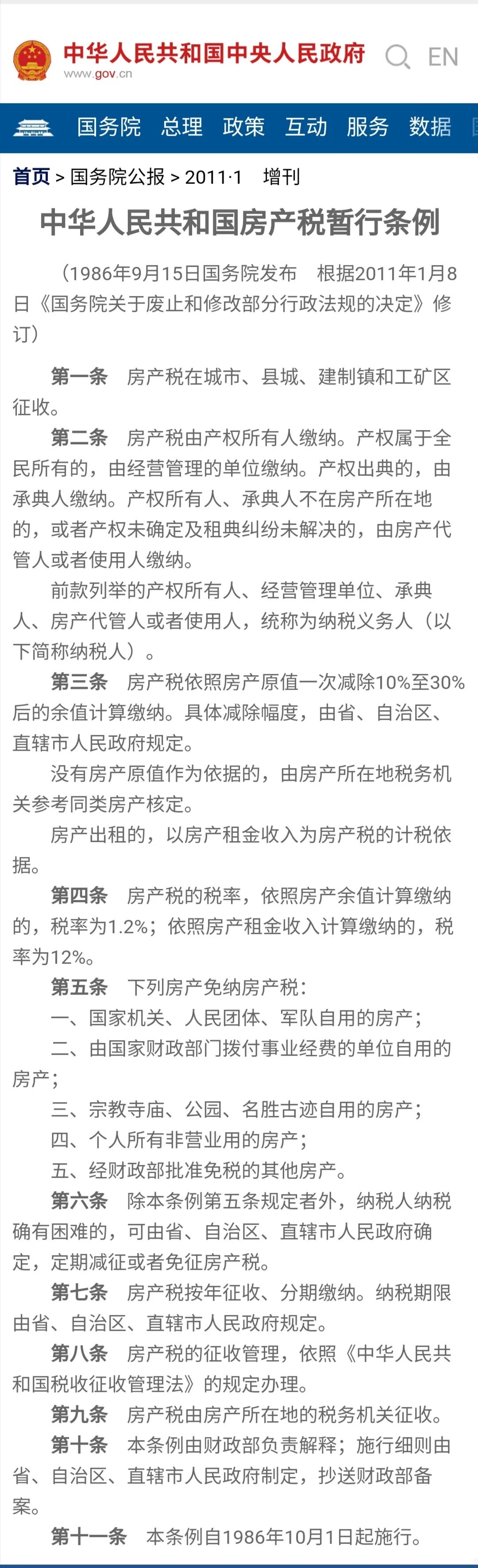 这大概是大半年来,第一次有官员公开提及“房地产税”。2019年“两会”期间,全国人大的领导曾表示:集中力量落实好党中央确立的重大立法事项,包括制定房地产税法等立法调研、起草,加紧工作,确保如期完成。当时,媒体普遍预测:“房地产税法”,很有可能在2019年公布草案,并“一读”。一般来说,一个全新的法律从制定到正式出台,至少需要“三读”,也就是在全国人大审议三次。但到了2019年下半年,随着经济下行压力加大,房地产税最终没有了消息,直到2020年4月28日被深圳住建局长提及。近期还有一件事,也让很多人联想到了房地产税。这就是住建部近日印发通知,要求全面采集楼盘信息,实现网签即时备案,推进房屋网签备案系统全国联网,也就是实现“全国一张网”。那么问题来了:深圳有可能率先开征“房地产税”吗?全国性的房地产税,将会在什么时候落地?或许有读者会反驳我:深圳怎么能叫率先开证?上海、重庆不是2011年就试点了吗?这涉及到一个99%的中国人至今都搞不懂的重大问题——房产税和房地产税。别看这两个词只差一个字,但法理基础、含义都差别巨大。房产税在中国早就有,现行的“房产税”开征依据是1986年9月国务院发布、2011年1月修订的“中华人民共和国房产税暂行条例”(见下图):这个“房产税”一直在征收,从来没有间断过。但个人购买的房屋,一般是免征的,所以很多人不知道它的存在。根据财政部的数据,2019年全国征收房产税2988亿元,同比增长3.5%。上海和重庆的房产税试点,依据就是这个“房产税条例”,我们可以称之为“老版房产税”。它的最大死穴,是没有考虑房屋的升值。是按照“房产原值一次减除10%至30%后的余值计算缴纳”,一般税率为1.2%。重庆、上海开征的时候,是在1.2%的基础上下调的。按照原值征税,就会出现这种荒诞的情况:比如你是一个小区的原始业主,20年前买这套100平米房屋的时候,原值是50万元,那么你就一直按照50万元的7折纳税;而你的邻居,是今年新来这个小区的,跟你一样的户型,结果他花了600万,那么他的计税依据就是600万的7折。“房产税”没有包括土地因素,没有考虑到房屋的升值。所以必须与时俱进,这就是要出台“房地产税法”的原因。更重要的是,国家已经确定了“税收法定”的原则。所有的税种,其开征依据都必须是全国人大制定的法律,而不能是国务院或者某个部委的条例。在这个背景下,深圳再走重庆、上海的路子,参照“房产税条例”来试行就不可能了。说白了:如果深圳要试点房地产税,一定是新的税种、税法,而不是“房产税”。而且要全国人大授权。所以在深圳试点“房地产税”不是局长一句话就可以实现的,牵扯到方方面面。但这不是说100%做不到。事实上我一直建议,“房地产税”最好能在全国一批城市试点之后,再全面推广。因为情况太复杂了。比如小产权房、违法建筑,征收不征收?如果不征收,那么在深圳就出现这种情况——一个白领家庭,辛辛苦苦买了两套房,其中一套要交税(估计第一套会免征);而另外一个原村民,历年非法抢建了3栋楼,上百套房子,反而一分钱税不用交。这公平吗?如果小产权房、违法建筑也要交税?是否意味着给予了“一定程度的确权”?中国的房屋产权非常复杂,除了小产权房、违法建筑之外,还有军产房、集资房以及旅游、工业用地上的住房,以及各类政策性住房、农村住房。如果开征房地产税,这些房子的种种特殊因素都需要考虑。很多家庭虽然购买了2套房,但仍然处于沉重按揭压力下。如果开征房地产税,势必加重负担,影响居民消费。上图是主要城市的居民消费情况,可以看出深圳虽然GDP位居全国第三,但居民消费只位居第七。这除了跟距离香港近,有些消费流失到了香港有关,更重要的原因是因为房价高、房租贵,“深漂”们勒紧裤腰带不敢花钱。如果开征房地产税,这些成本势必加入房价、房租,只会进一步挤压深圳的居民消费。其实这对于每个城市,都是适用的。政府加税,一定挤压居民消费。正因为如此,最近一两年,我们的政府是不断减税降费的,而全世界也都在减税降费。所以我的判断是:开征房地产税的最佳时点已经错过,未来绝大多数城市是没有条件开征的。如果把县城、县级市都看做一个城市,中国有2000多个城市。其中90%的城市,未来没有能力开征实质性的房地产税。目前香港的土地、房屋制度跟内地最像,也就是房价里包含了几十年的地价,所以税率极低,都是千分之几。有些人幻想,中国也跟美国一样,房地产税的税率是1%到2%,这是非常荒唐的。如果这么高的税率,一定会惹出大乱子。香港的房地产税(包含差饷、地租、物业税),一般低于一套房子的物业管理费,或者基本相当。如果内地首套免征,从第二套开征,可以适当高一点,但也不能太高。央行前两天公布的数据显示:我国城镇居民家庭的住房拥有率为96%,有一套住房的家庭占比为58.4%,有两套住房的占比为31.0%,有三套及以上住房的占比为10.5%,户均拥有住房1.5套。这意味着,中国楼市已经到了临界点。除了大城市因为人地错配,还有比较明显的住房新增需求,绝大多数三四五线城市,基本上饱和了。在这种时候全国一刀切开征房地产税,结果一定是:大家纷纷抛售中小城市的住房,都跑到大城市买房子。所以,对于人口竞争力偏弱的中小城市,开征房地产税相当于经济自杀,是催促大家
