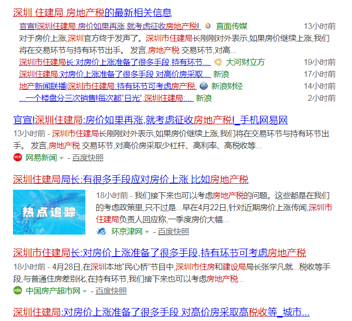 深圳市住建局局长在接受深圳电台“民心桥”栏目采访的时候,谈到了近期被全国舆论关注的深圳楼市。他说:作为政府部门来讲,我们对于房价上涨不是没有考虑的,我们更多想通过一些标本兼治、精准施策的办法来解决房价问题。我们不是没有手段,我们准备了很多手段。比如在交易环节,对高价房采取少杠杆、高利率、高税收等手段,与普通住房差别化;在持有环节,我们接下来也可以考虑房地产税的问题。这些都是在我们的考虑政策里,只不过是根据市场的情况,什么时候出的问题。