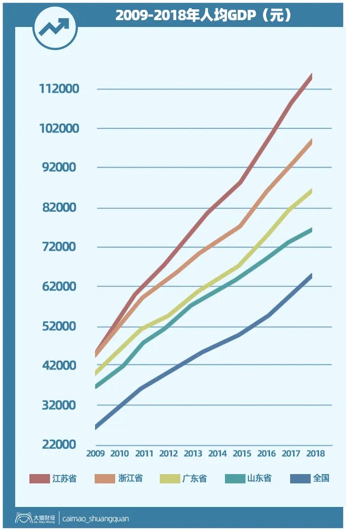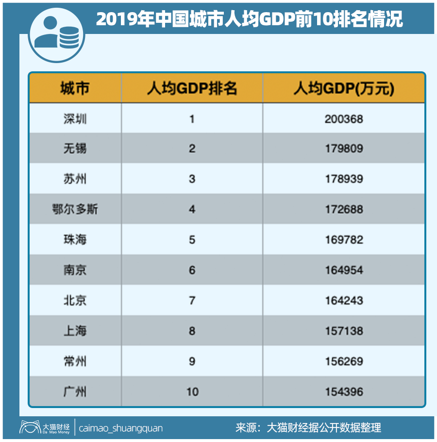 城市发展快,居民自然受益,如果从人均GDP的排名看,前10位里,除了北京这种中心城市和鄂尔多斯这种人均土豪的资源型城市,剩下的基本都在这两个三角地区。