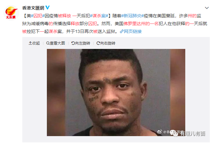 当然,不是所有的囚犯都会用抗议这种“温柔”的方式。在宾夕法尼亚州富兰克林县监狱,在押人员发起绝食抗议;华盛顿州一所监狱,上百名在押人员发起抗议;堪萨斯州的兰辛惩教所,囚犯在狱中纵火打砸,要求监狱给他们发放口罩等防护物资……如此下去,大范围的监狱暴动将一触即发。怎么办?放了?似乎可行!近日,阿肯色州州长阿萨·哈钦森已经表示将提前释放囚犯。而纽约、洛杉矶和克利夫兰监狱中数百名“身体脆弱”的囚犯已经被释放。但是,释放囚犯真的是一个好办法吗?如此多的囚犯是无症状感染者,不知道自己已经感染病毒的他们如果返回家中,势必会传染给家属,继而再传染给其他人。放出来的人,极有可能就是一个个病毒“超级传播者”!不仅如此,别忘了这些人都是囚犯!他们很有可能重新成为社会治安秩序的破坏者和重大安全隐患。就在上个月,佛罗里达州一名囚犯因疫情被释放,在获释的一天后就被控犯下一起谋杀案,再次被送进监狱……不放?可如今的情况下,谁都无法缓解或控制病毒在美国监狱内疯狂传播,更没有人敢于或有能力承担监狱大范围暴动的风险!监狱已不能算作“围城”,因为无论里外,同样危险!而放与不放,都是下策!美国监狱的问题彻底陷入了两难的境地,且是个“死扣”,根本无解!造成如今这个情况,似乎一切责任都应归咎于病毒。但实际上,这个苦果,是美国政府自己种下的,含着泪也得吞下去!你有没有想过,二百多个国家都出现了新冠疫情,为什么单单美国监狱的形势到了如此严峻的情况?!我觉得,除了特朗普领导下的美国政府一直应对疫情不力之外,有一个极为重要的原因就是,美国监狱的人数实在是太多了!我们上面已经提到,美国目前在押囚犯近230万,高居世界榜首!这就很讽刺了……一个一直标榜注重人权的国家,犯罪率却奇高无比!一个宣扬“民主自由”甚至以全世界的“民主自由”为己任的国家,却有如此多的人失去了自由!就在前两年发布的《全球各国犯罪及安全指数排行榜》中,美国排名已经跌到了81位。当然,会有人洗地说美国的犯罪率这么高,跟他们的法律制度有直接关系。美国定义“犯罪”的底线相对较低,很多一般性的违法行为都很可能会被划入犯罪。我们不否认,美国的法律制度的确是这样,但这绝不是其犯罪率高的主要原因!根据在网上搜索到的一组由“联合国毒品和犯罪问题办公室”发布的数据显示,以民主自由的灯塔自居的美、英两国的犯罪数据要远远高于中国,其中枪击、抢劫、盗窃等犯罪行为都非常突出,难道这也是法律制度的原因?同时还可以发现,美英的西方铁杆“盟友们”的犯罪数据也同样非常难看……美国犯罪率居高不下,归根结底是源于其国内社会矛盾不断加剧,社会结构失衡,导致贫富差距严重,阶级固化问题及种族对立愈发突出。在美国生活的中低端人群没有希望和生机,中产阶级生活和精神压力巨大,只有站在金字塔顶端的资本家们逍遥快活。长此以往的社会形态,就是犯罪的温床。在美国生活过的人对其社会问题都深有体会,比如美国的富人区和贫民区相当分明,且环境差距巨大。在贫民区聚集的多数都为黑人,他们要么做着低端的服务业工作,要么就是以贩卖毒品、枪支以及黄色产业和其它灰色手段为生。而且,就算你不是走在贫民区的街道,晚间也不敢一个人出门。再加上美国混乱的枪支管理,导致枪击案经常发生。所有去过美国的中国人,无一例外都担心过自己的安全问题。特别是疫情爆发后,枪支店生意火爆,且争相抢购的人多是亚裔。由于美国政客煽动种族,他们购买枪支被迫自保。对不起,我闻不到“自由香甜”的空气,也闻不到充满希望的气息,只闻到了枪支火药和毒品的味道……有一组惊人的数据可以佐证很多美国罪犯的“破罐子破摔”,他们在这里似乎毫无前途和希望可言。据统计,美国出狱的囚犯中,近乎67.5%的人会在三年之内再次被拘捕,51.8%的人会因为犯罪被判入狱,累犯率同样是全球第一!所以可以说,“犯罪”在很多美国人这已经入脑入心了。犯罪性质也并非因一时冲动而导致的“激情犯罪”,而是由各种严重的社会问题所致形成的“犯罪思维”。其实从情感上讲,美国监狱内的囚犯也挺可怜,虽然他们曾经犯下了各类罪行,但已经接受了法律的处罚,如今却还要饱受病毒的侵袭。更可怜的是,如今里面的人想让他们“滚出去”,外面的人想让他们“滚回去”……