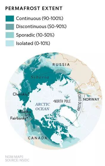 早在2006年,阿拉斯加大学生态学家凯蒂·沃尔特就在《自然》杂志撰文,警告人们随着永久冻土带(指永久冰冻的下层土壤,出现在整个北极地区和部分长期寒冷的地区)的融化,甲烷释放量的增长可能会加剧气候变化。