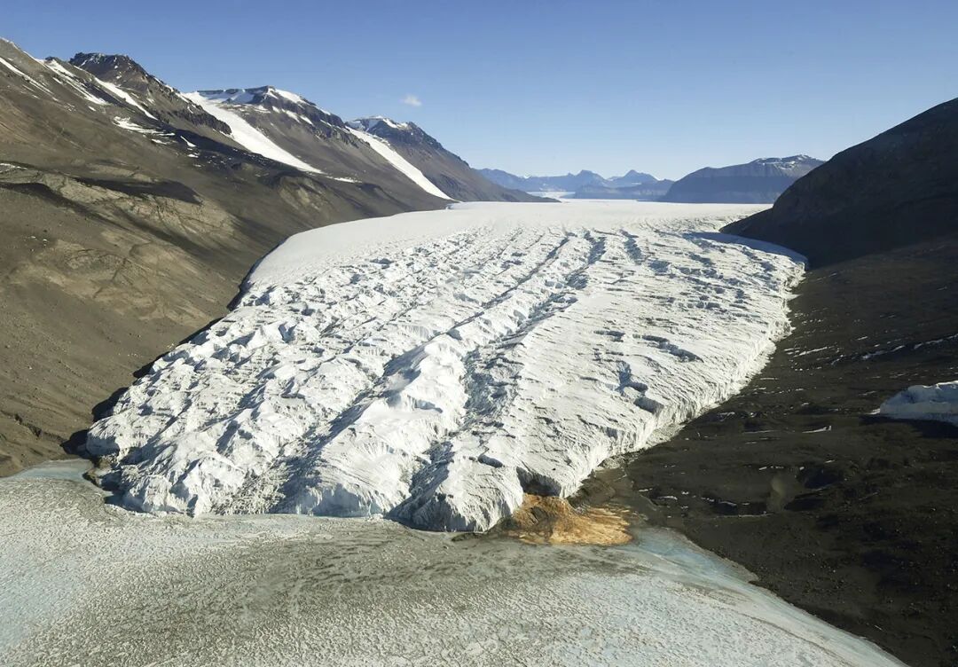 2016年11月11日,南极麦克默多站附近的泰勒冰川加速消融。