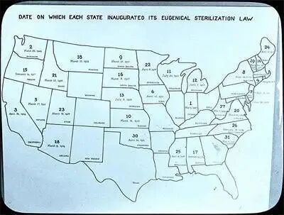 20世纪,美国有32个州通过了优生绝育法案,导致6、7万人被强制绝育。