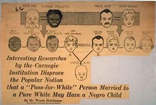 ▲ 种族混合血统图:白人与黑人结合必然生出黑人