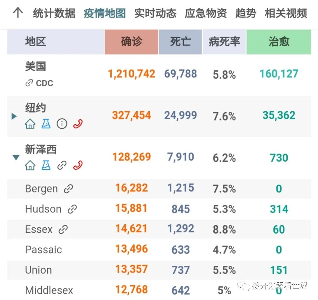 新泽西州是美国仅次于纽约州的疫情中心,确诊12万多人。