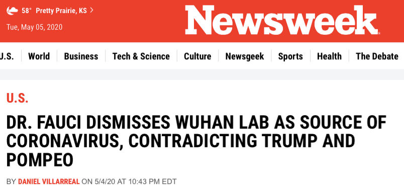 “最有力的证据已经显示,大流行背后的病毒并不是诞生在中国的实验室中。” 当地时间5月4日,美国首席传染病专家福奇在接受《国家地理》专访时再次否认“新冠病毒是中国实验室制造”的阴谋论。美国《新闻周刊》说,他的观点与特朗普和美国国务卿蓬佩奥截然相反。其实,福奇本来应该在疫情中扮演更加重要的角色,在医疗领域的抗疫操作也应该由专家扮演主角,中国的专家组就不断出台治疗和防疫的指导意见,看看钟南山、李兰娟等专家起到的作用有多大,封城就是李兰娟教授力主建议的。中国的政治家也讲科学且决策果断,听完专家的意见立刻就决策了,这种魄力和眼光也是西方政治家完全不具备的。所以,福奇某种程度上是很憋屈的,眼看着领导胡说八道,顶多做几个表情包。