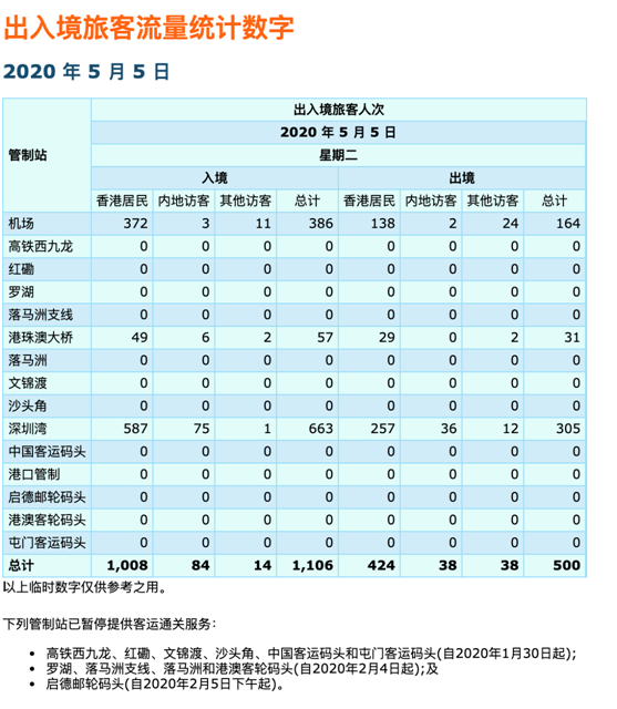 受疫情与特区防疫措施影响,今年五一期间,入境香港的旅客跌至近年来最低点。香港入境处公布的数据显示,本月1日至5日,共计539名内地访港旅客入境,较上年同期暴跌99%。