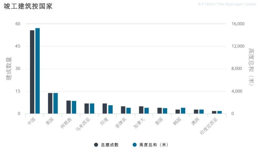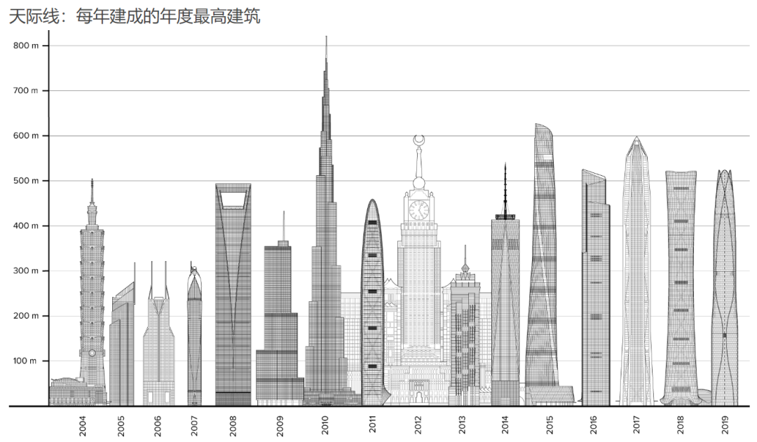 日前,住建部和国家发改委日前联合下发通知,要求各地进一步加强城市与建筑风貌管理,严格限制各地盲目规划建设超高层“摩天楼”,一般不得新建500米以上建筑。在内地,500米以上的摩天大楼并不多见。北京的中国尊大厦,上海的上海中心大厦,广州的东塔,深圳的平安金融中心,天津刚竣工的周大福金融中心,是为数不多的几个典型代表。其中,高达632米的上海中心大厦为中国第一高楼,而世界第一高楼为迪拜的哈利法塔,高828米。不过,摩天大楼向来被认为是城市繁荣的见证,追逐超级摩天大楼的城市不在少数。根据世界高层建筑与都市人居学会官网公布的最新数据显示,包括在建、已经建成和有规划的超高层,国内300米以上的超高层有464座,这个数据超过全球的三分之一,其中以深圳、广州、上海等地为最。◆2019年各地摩天大楼竣工数量 来源:CTBUH