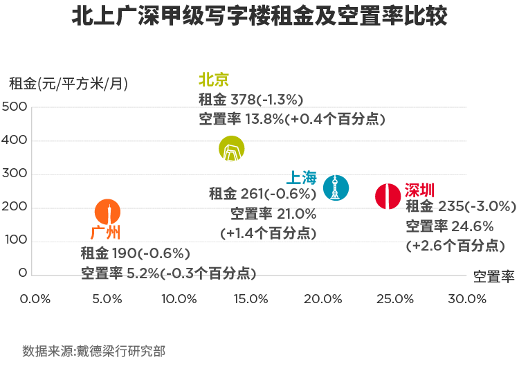 且不说坊间热议的“摩天大楼”诅咒,超高层建筑本身就存在建设周期长、成本高、拆建困难、消防救援能力不足、空置率高企的短板。安全问题自然不用说,目前世界最高的消防云梯只有100多米,而摩天大楼动辄300米、500米以上,这无疑对消防救援带来前所未有的挑战。一般而言,摩天大楼往往在货币相对宽松期蜂拥而出,利用市场资金充裕、利率较低的特点大行建设之能事。然而,经济不会一直繁荣,货币不会一直宽松,市场不会一直向上。一旦出现逆转,摩天大楼很容易陷入资金链困局,轻则削减预算,重则烂尾。由于摩天大楼容积率爆表、造价高昂,等到建筑老化之后,不仅改造费用高企,拆迁的可能性也微乎其微。这两年,舆论热议的高层建筑会不会沦为城市新“贫民窟”,并非没有道理。即便摩天大楼顺利落成,还会面临空置率过高、租金回报率过低的困局。2020年一季度,由于疫情影响,国内多个城市甲级写字楼空置率创出新高。戴德梁行数据显示,一季度深圳写字楼空置率24.6%,环比上升2.6个百分点,居四大一线城市之首,同期上海空置率21%,北京13.8%,广州5.2%。即便强如深圳,甲级写字楼空置率仍旧居高不下,遑论没有高新产业支撑的二三线城市?