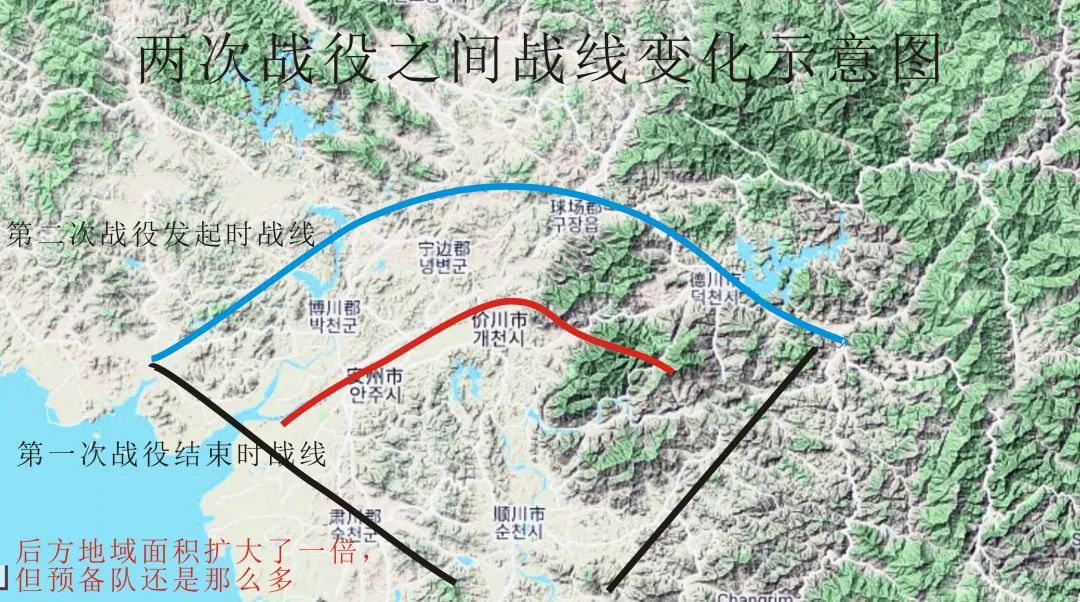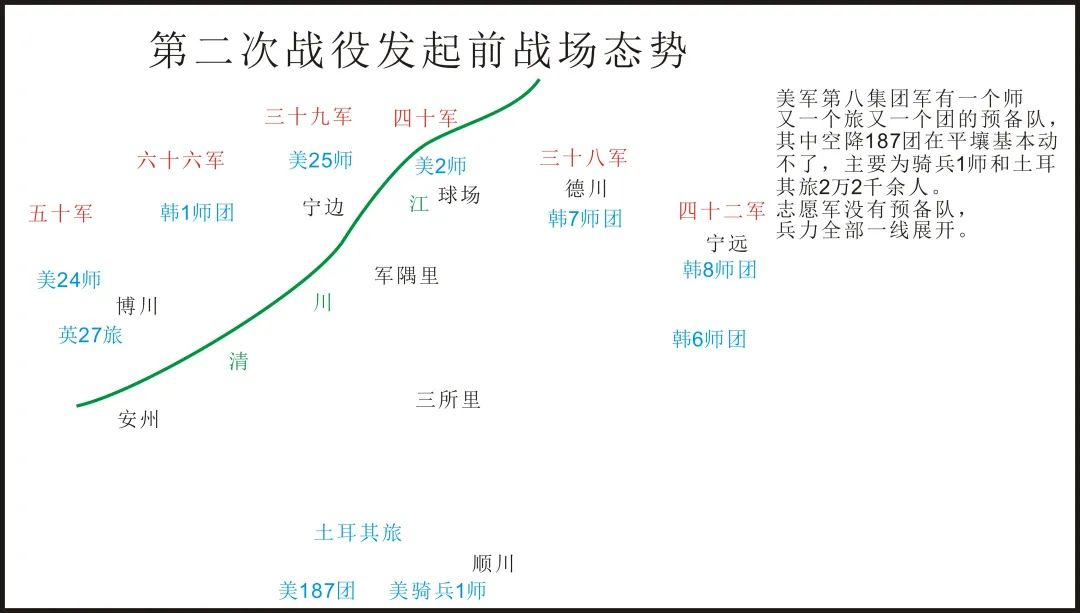 当美韩军从安州、军隅里一线开始进攻时,其正面大约120公里。