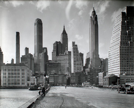 实际上,1930年代的美国已经高度发展,下图是摄影师Berenice Abbott在1940年完成的由302张摄影作品组成的《改变纽约》,拍摄的1930年代的美国纽约,可以看出纽约曼哈顿的天际线已经完成。