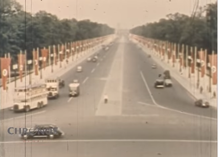 开篇的画面便觉得有点震撼,因为如果把这个画面定格,然后让你猜测这是哪一年的话,如果不看那些旗帜,并忽略掉渣画质以及汽车的样式,并没有那么容易猜测出来,