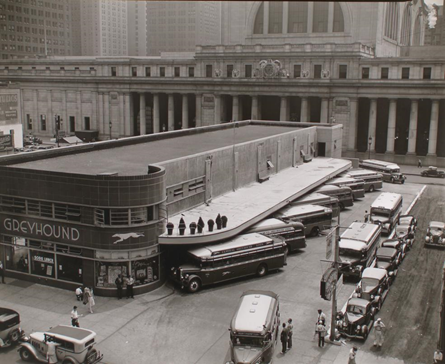 下图的英文可以看出这是个灰狗巴士总站,灰狗是公交公司的名字。