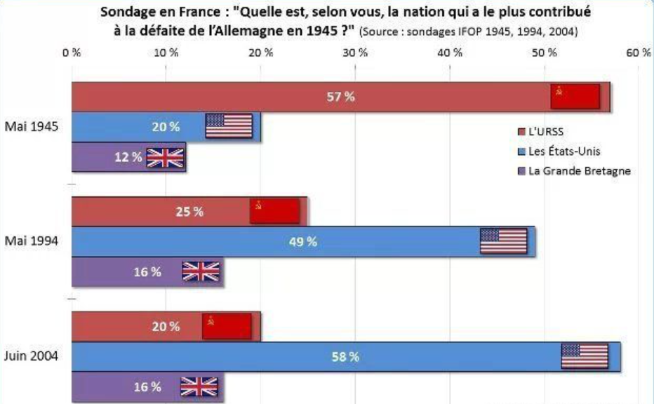 法国曾经做过一个调查:你认为哪个国家在1945年击败德国的战争中贡献最大?