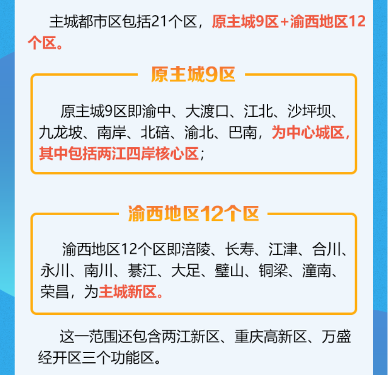 随后,重庆主城都市区扩容尘埃落定,从9个区扩容到21个区。
