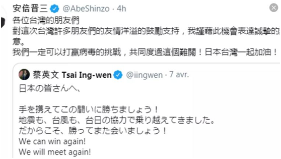 日本时事通信社称,中国主张“一个中国”的原则,强硬拒绝台湾参加本月18日召开的世卫组织本年度全体会议(显然他们清楚中方立场)。但台湾要求“向世界贡献台湾在防止新冠病毒感染扩大上的经验”,获得了美日欧的“支持”。对美国国务卿蓬佩奥在6日记者会上要求世卫组织及各国支持台湾,“安倍政府和美国步调一致表态支持”。