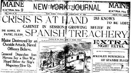 ▲ 赫斯特《新闻报》捏造新闻头条,声称是西班牙人所为。