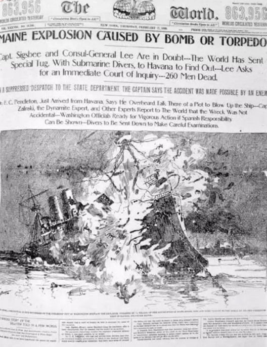 1898年2月25日晚,美国军舰“缅因号”,突然在西班牙殖民地的古巴哈瓦那港口爆炸。