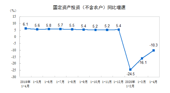 上图是1到4月投资增长情况,可以看出反弹还是很快的,但增速仍然是负的10.3%。其中国有控股投资增速是-6.9%,民间投资是-13.3%。未来一段时间,投资还是要靠地方政府、国有企业来拉动,民间投资也会跟上。
